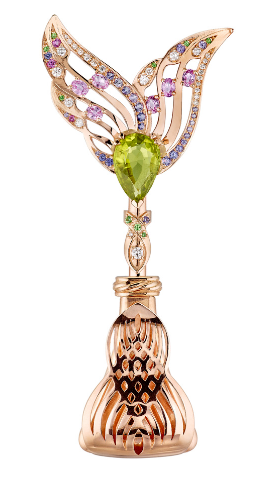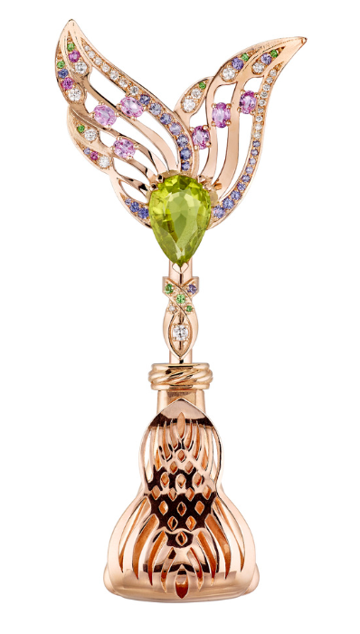 Ornement en forme de papillon, Monture en Or rose 18 Ct, sertie de Peridot, Tsavorites, Saphirs, Diamants.